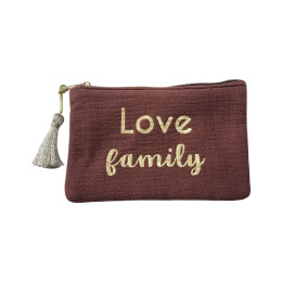 Pochette marron  10.5 X 17 cm Love family et pompon-Or